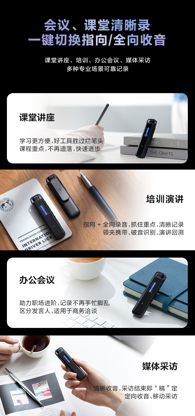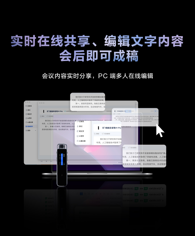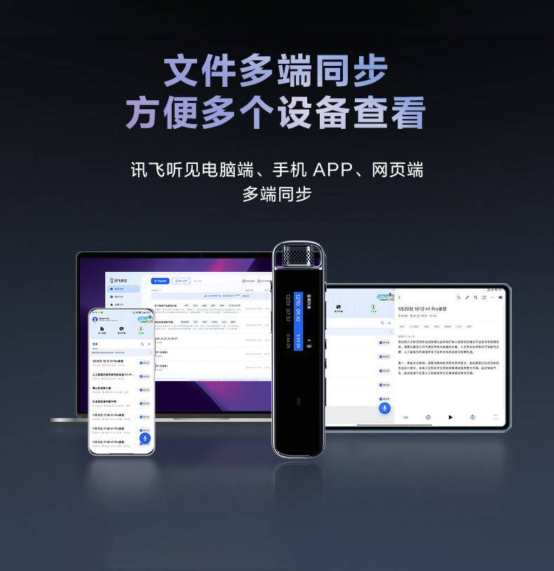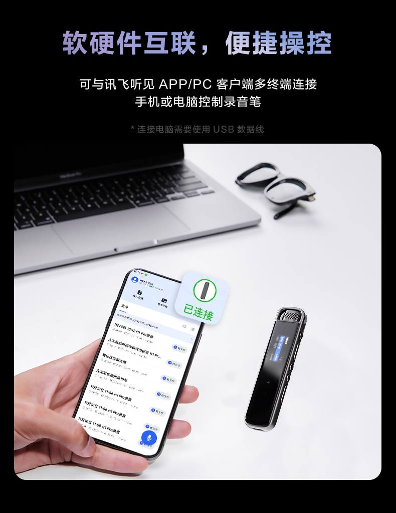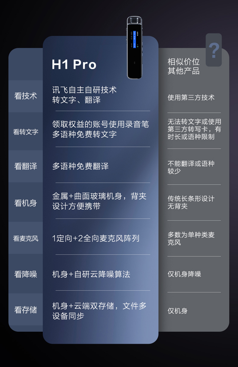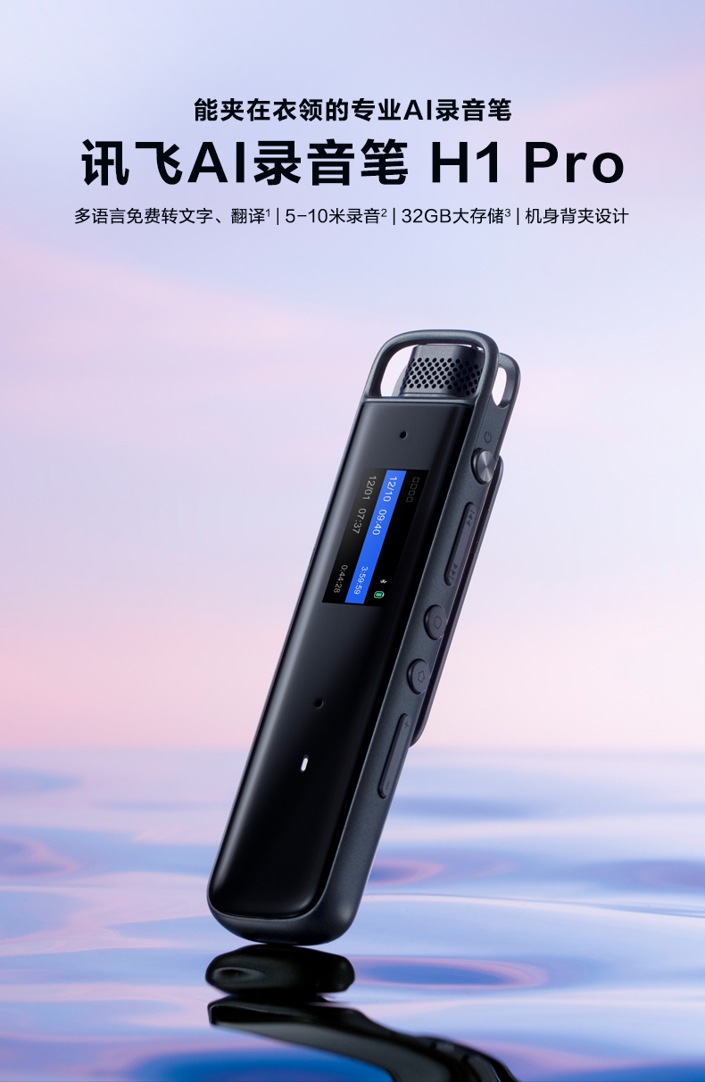 科大讯飞AI录音笔H1 Pro 免费录音转文字 智能降噪实时翻译录音器 随身小巧便携专业录音设备录音机