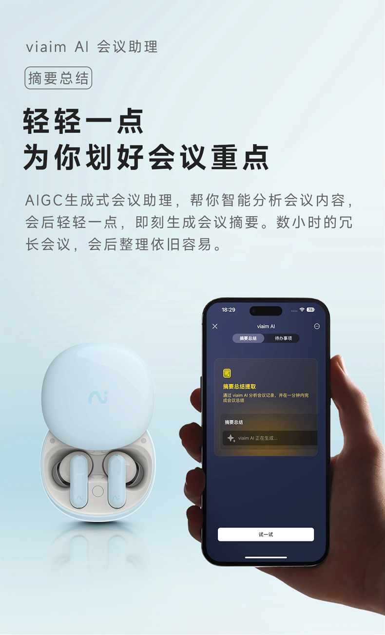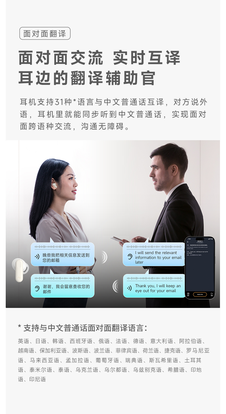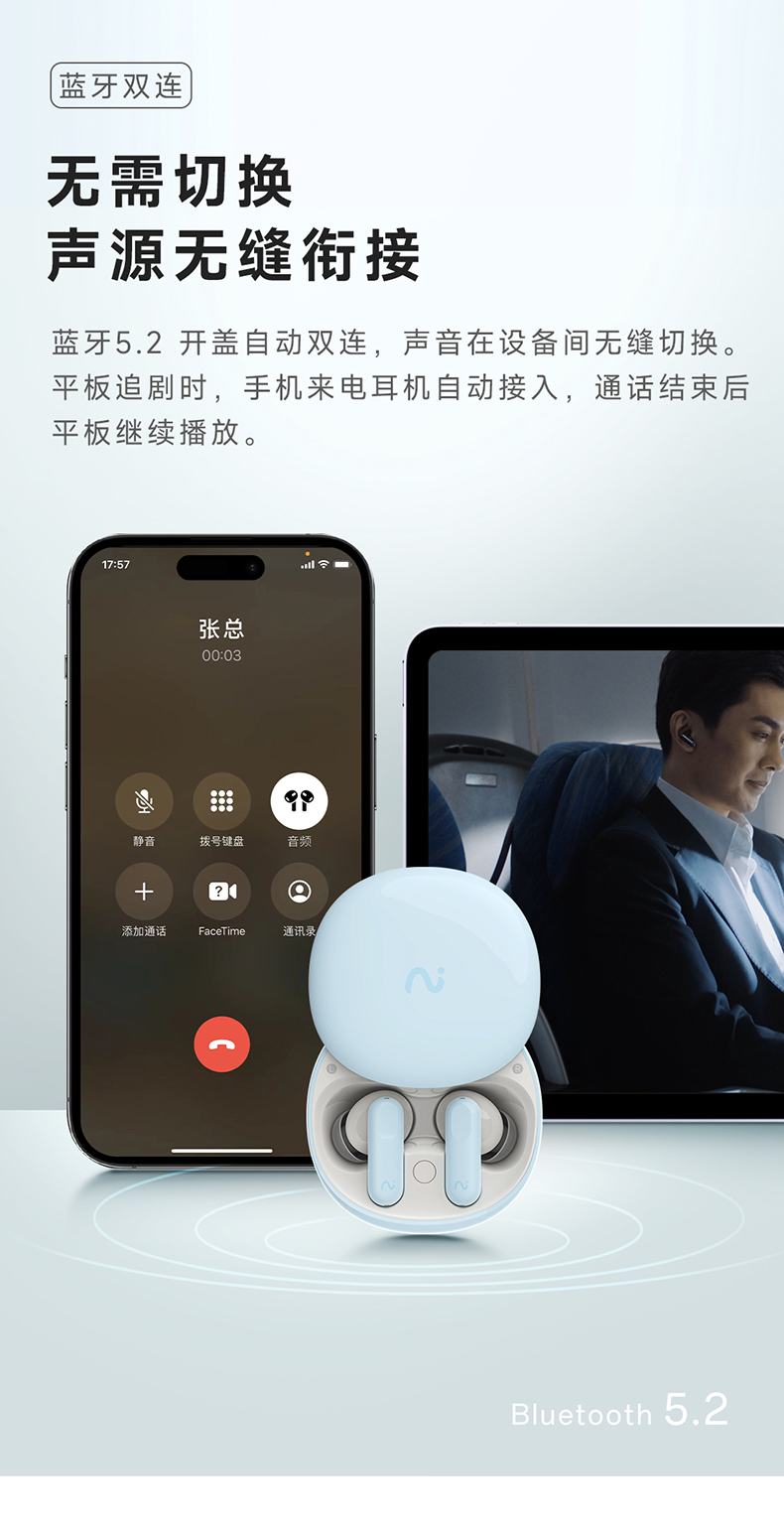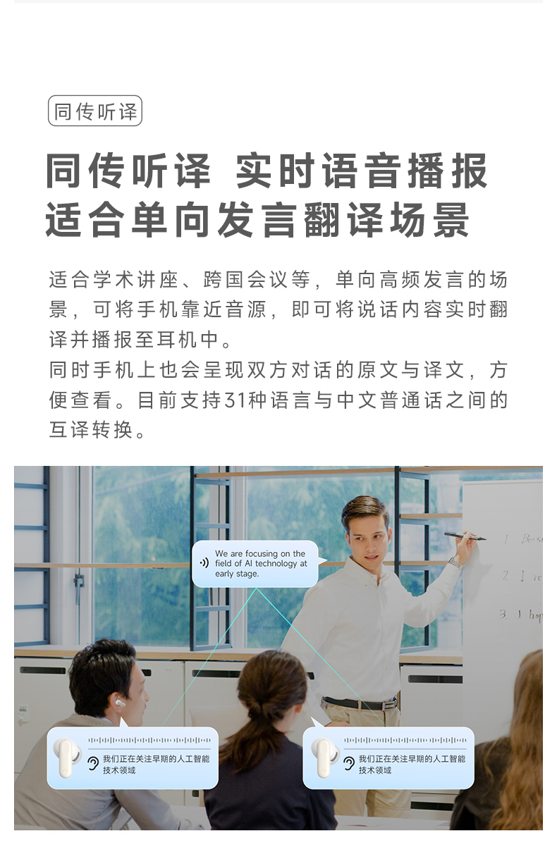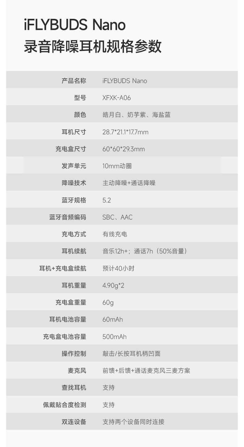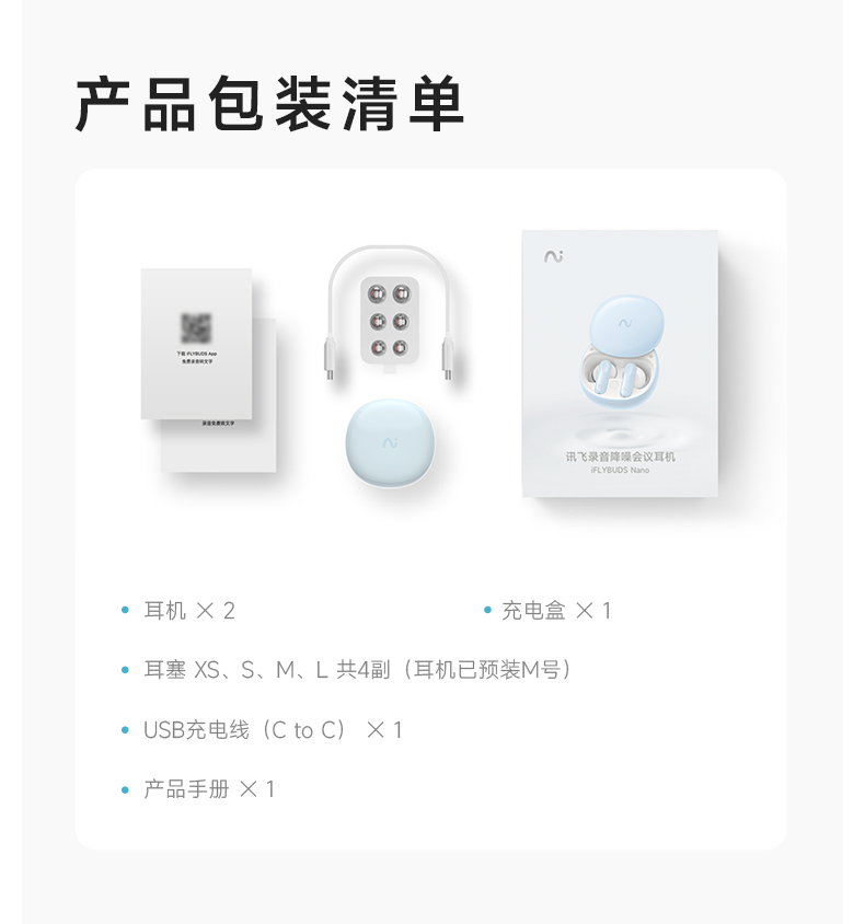 科大讯飞录音降噪会议耳机Nano 皓月白 无线蓝牙耳机主动降噪入耳式 超长续航 录音转文字翻译 会议耳机Nano