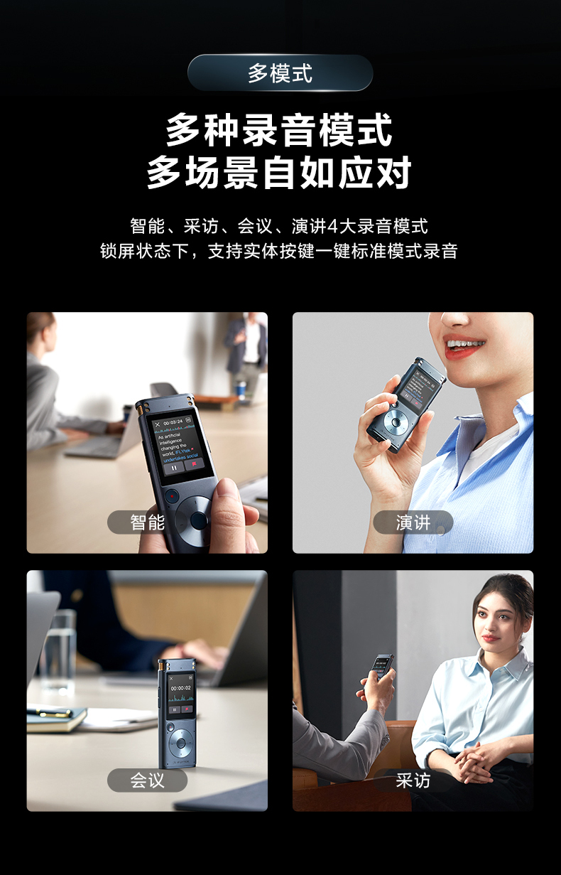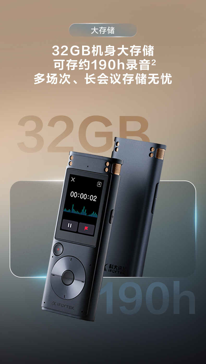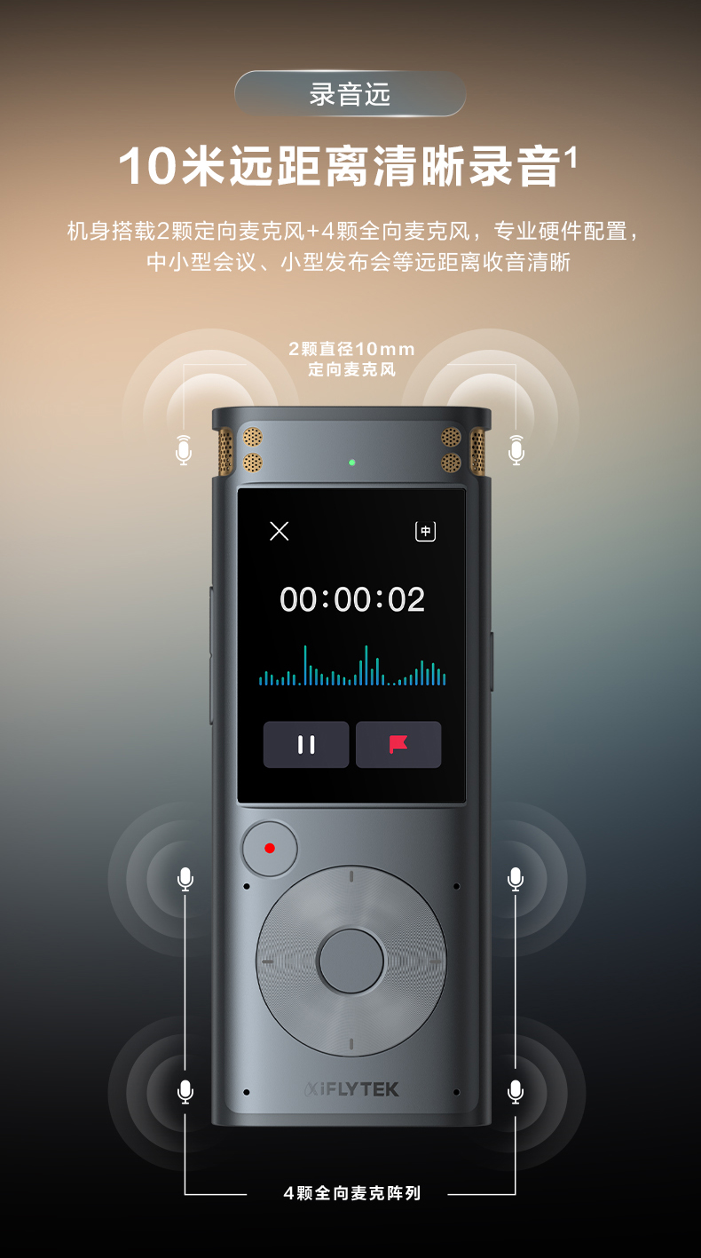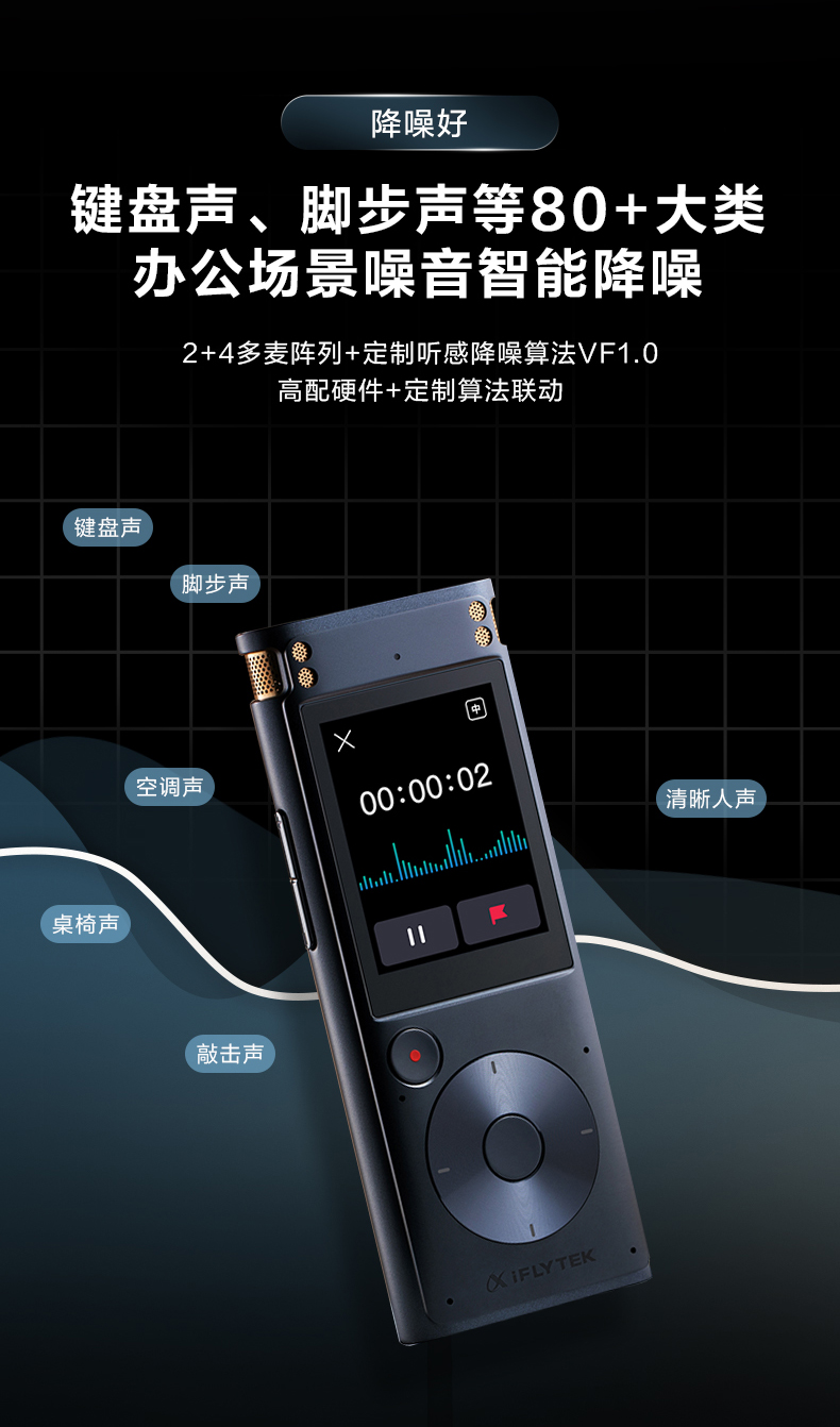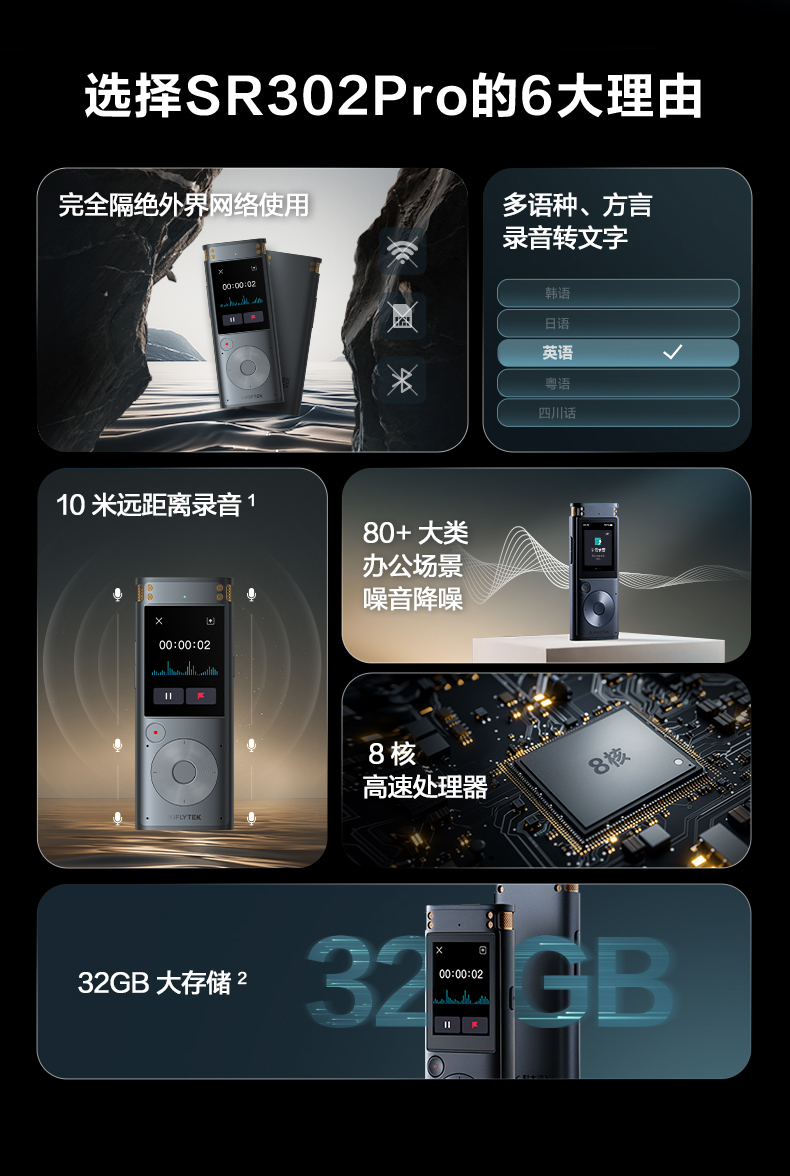 科大讯飞AI录音笔SR302T Pro 录音转文字 实时翻译转写免费转写 专业降噪会议纪要 【离线转写】SR302 T Pro 星空灰【32G】