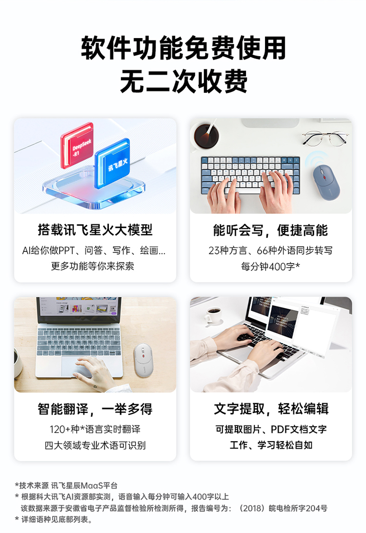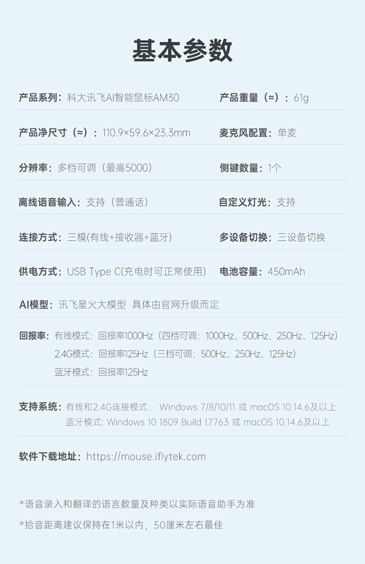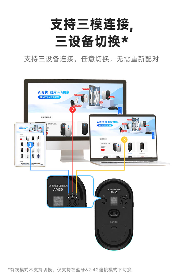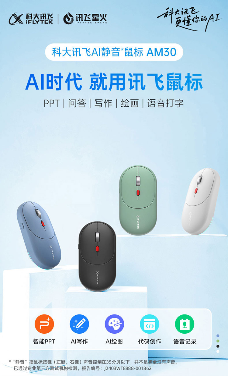 科大讯飞AI智能鼠标AM30 星火版 蓝牙无线鼠标 AI写作问答 智能生成PPT 可充电鼠标 轻音办公鼠标 AI智能鼠标AM30