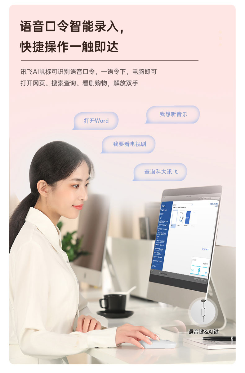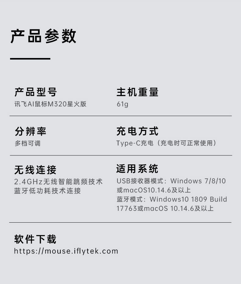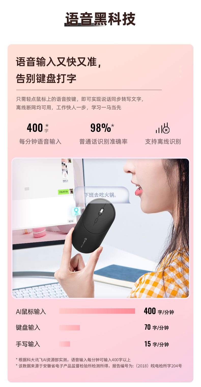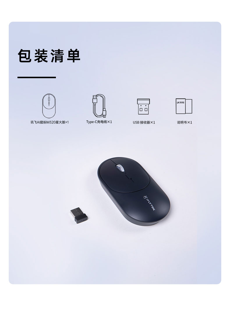 科大讯飞(iFLYTEK)AI智能鼠标 M320星火版 无线蓝牙鼠标 轻音鼠标 办公鼠标 轻量化 可充电 语音鼠标 超薄鼠标