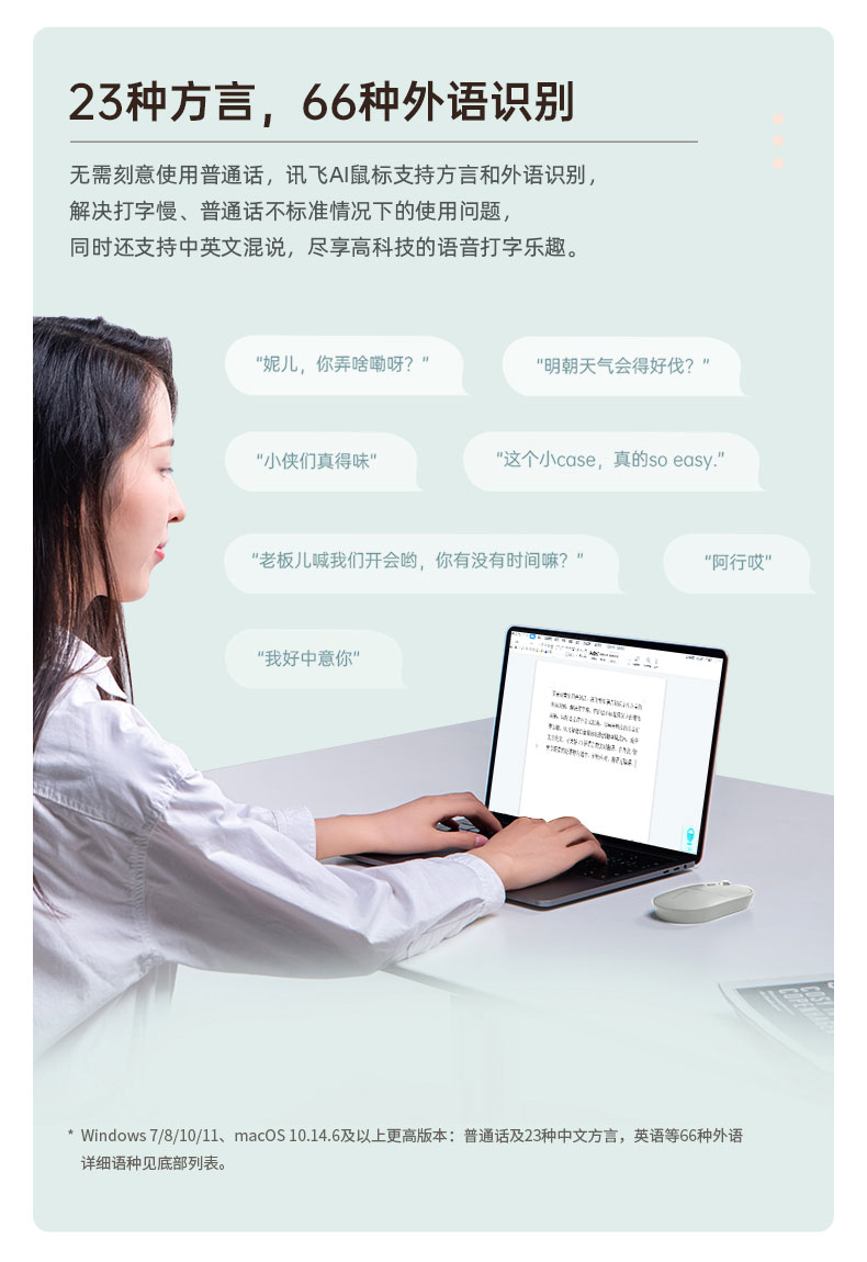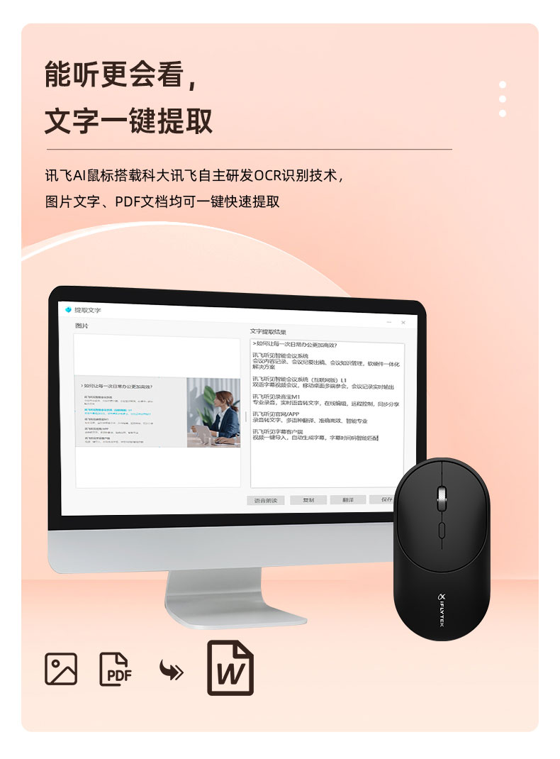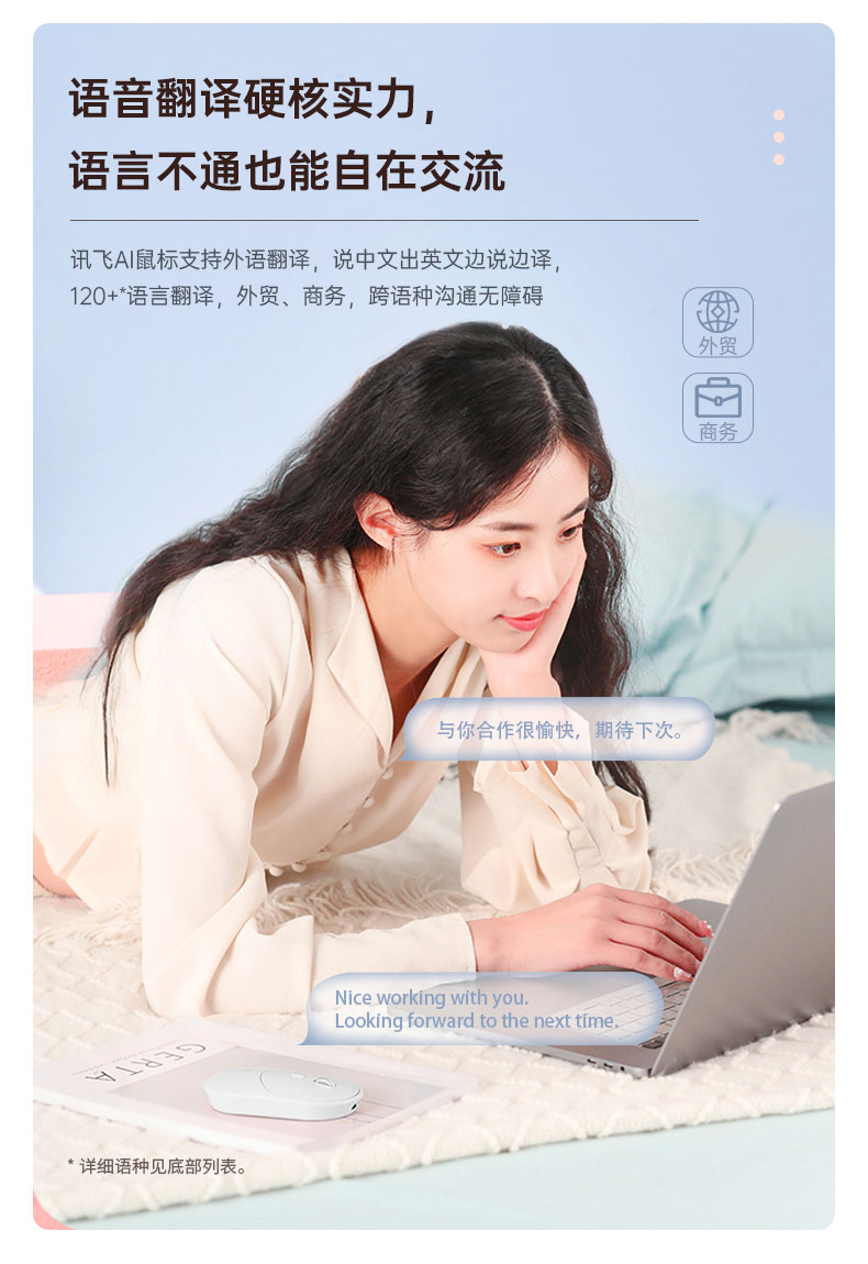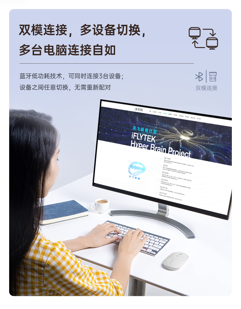 科大讯飞(iFLYTEK)AI智能鼠标 M320星火版 无线蓝牙鼠标 轻音鼠标 办公鼠标 轻量化 可充电 语音鼠标 超薄鼠标