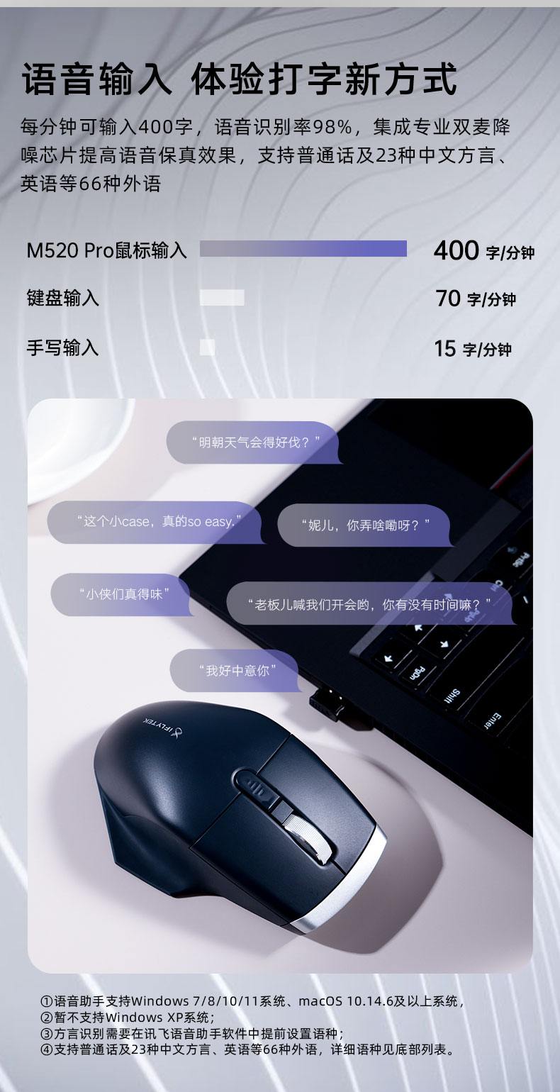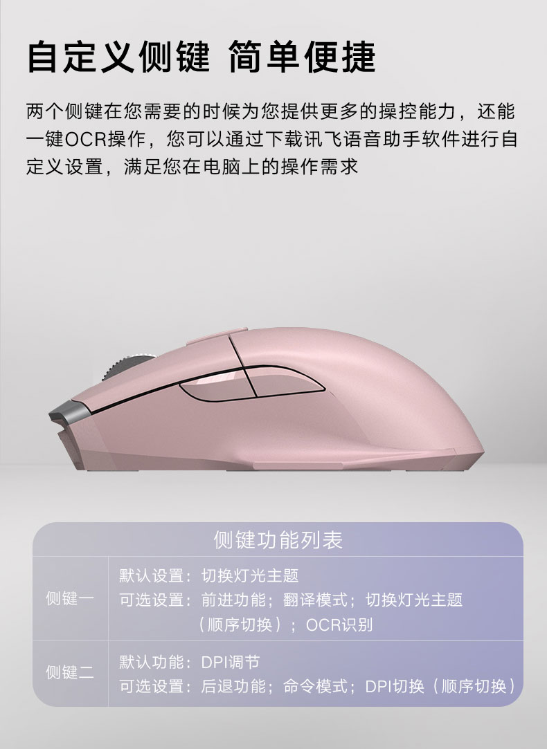 科大讯飞无线蓝牙鼠标M520Pro 粉色 办公鼠标 无线外设 人体工学鼠标 舒适握感 自定义侧键 语音输入打字翻译 粉色