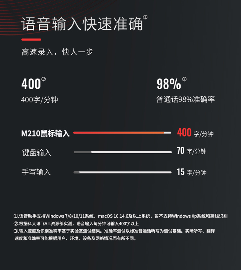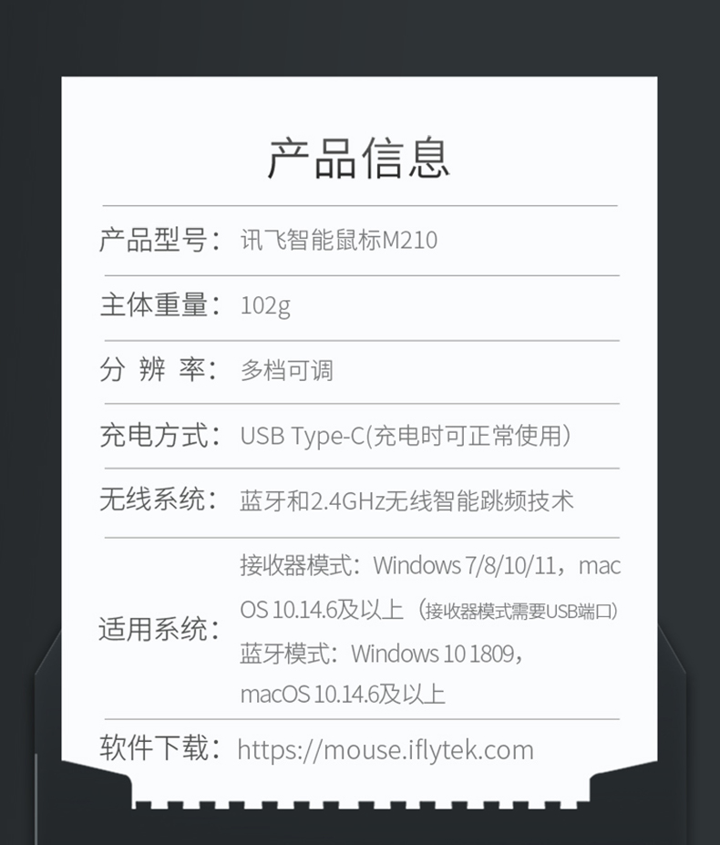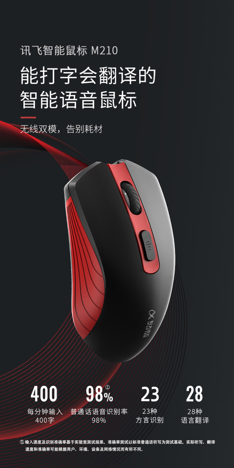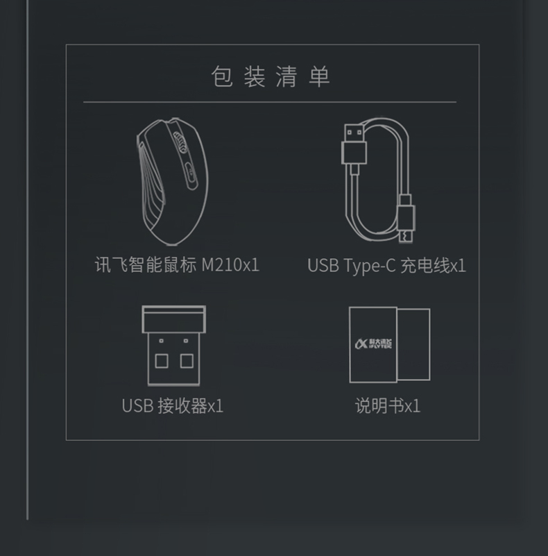 科大讯飞智能鼠标M210 语音鼠标 无线办公 充电鼠标 语音输入打字翻译 便携鼠标 【讯飞智能鼠标】M210黑