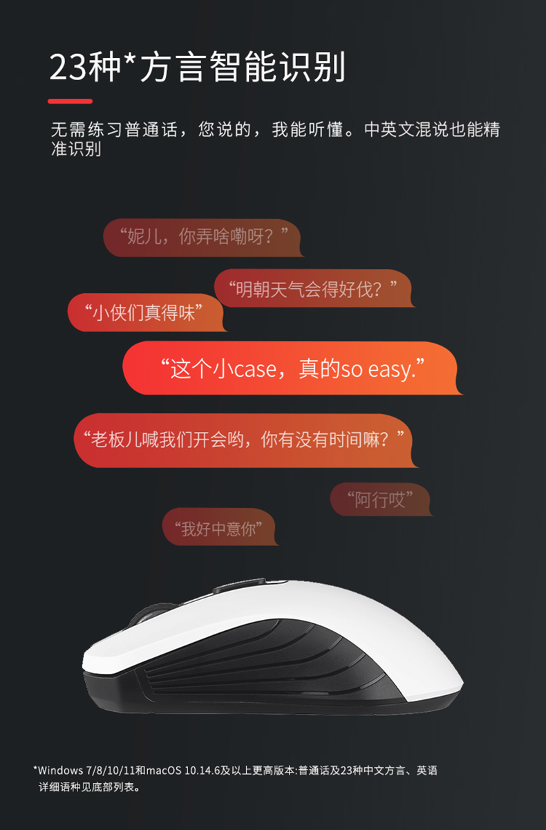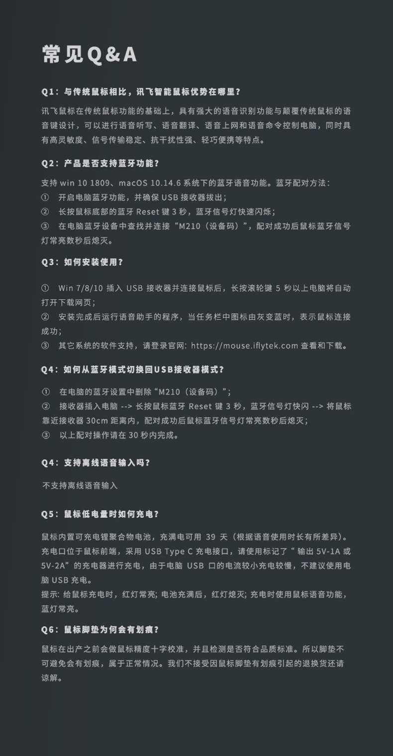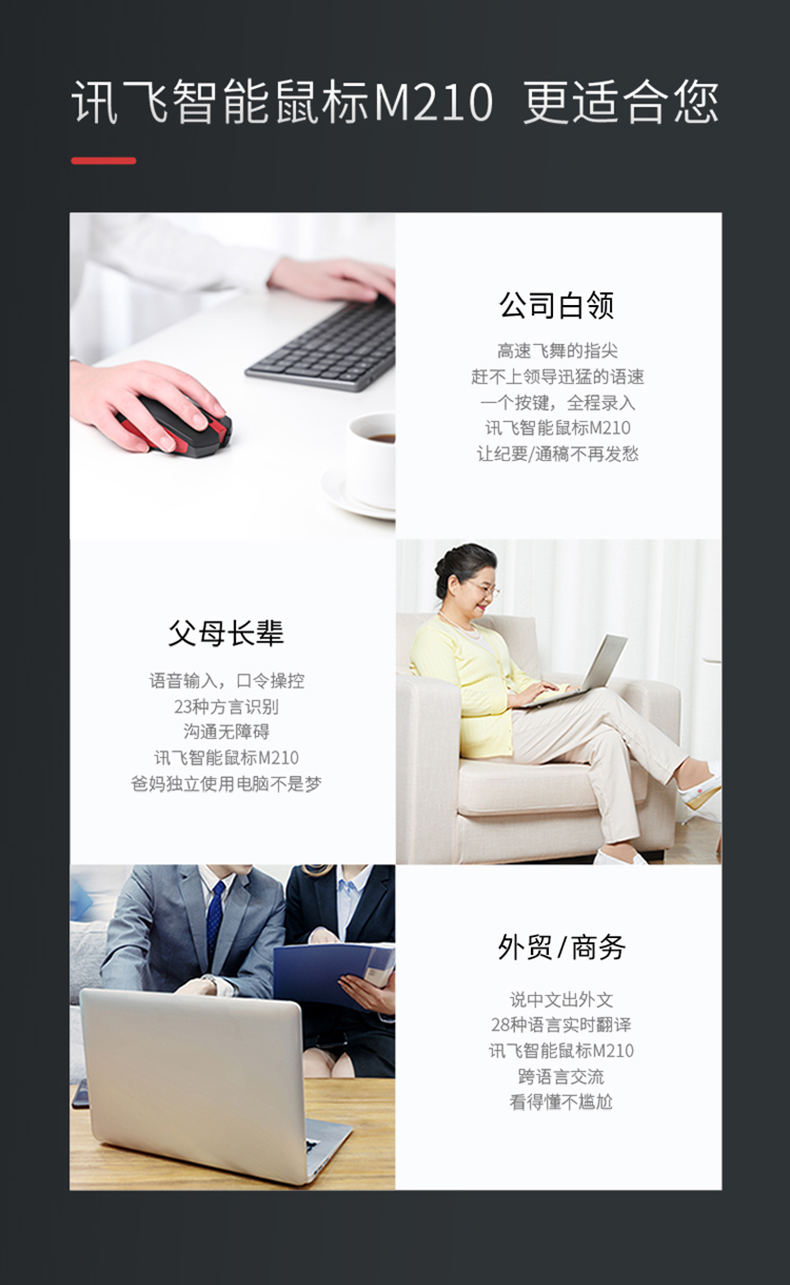 科大讯飞智能鼠标M210 语音鼠标 无线办公 充电鼠标 语音输入打字翻译 便携鼠标 【讯飞智能鼠标】M210黑