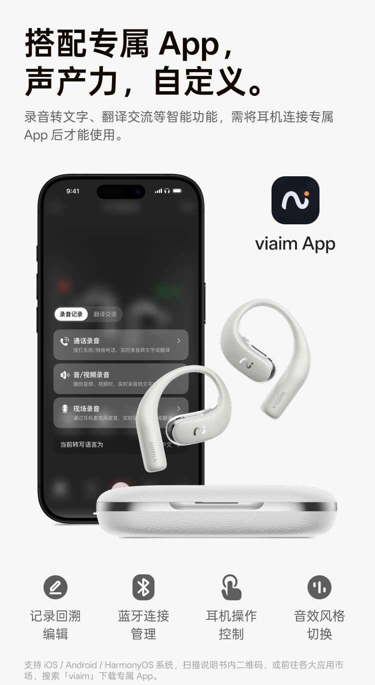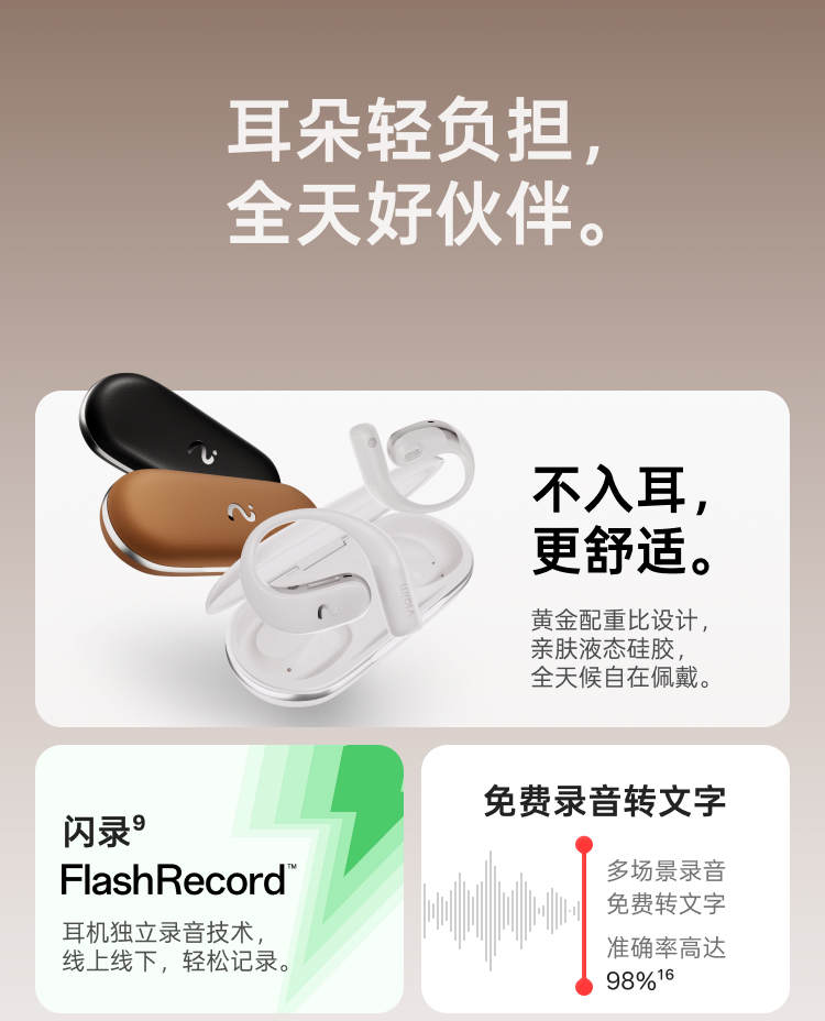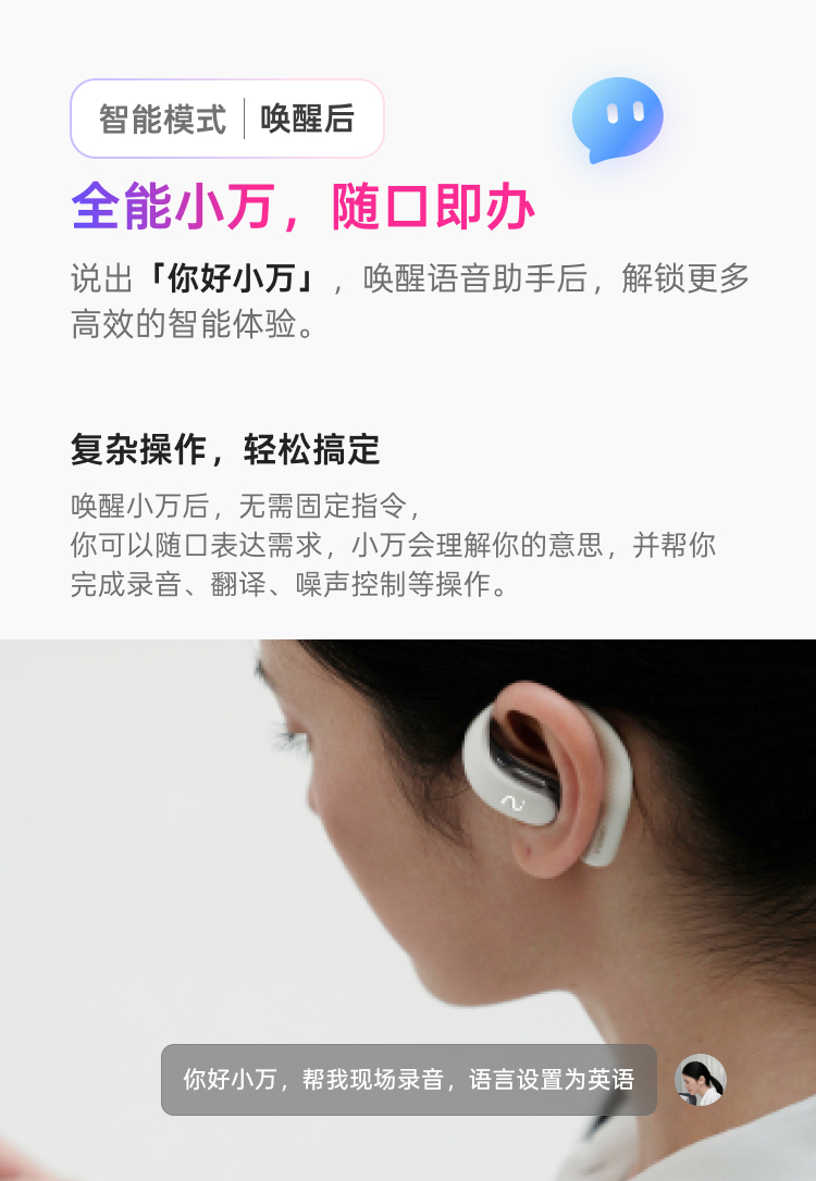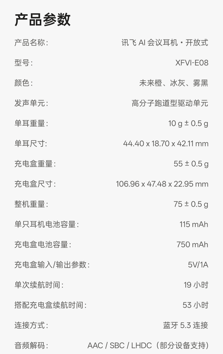 科大讯飞开放式AI耳机Air2 多场景会议通话 免费录音转文字 舒适不入耳智能防漏音 53H长续航