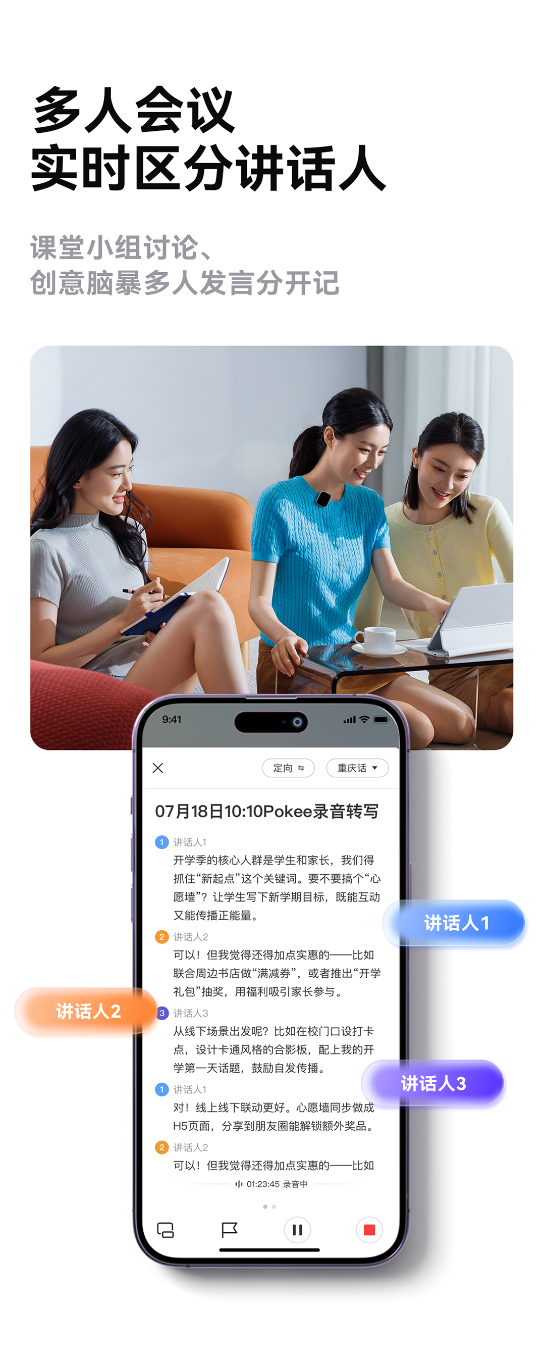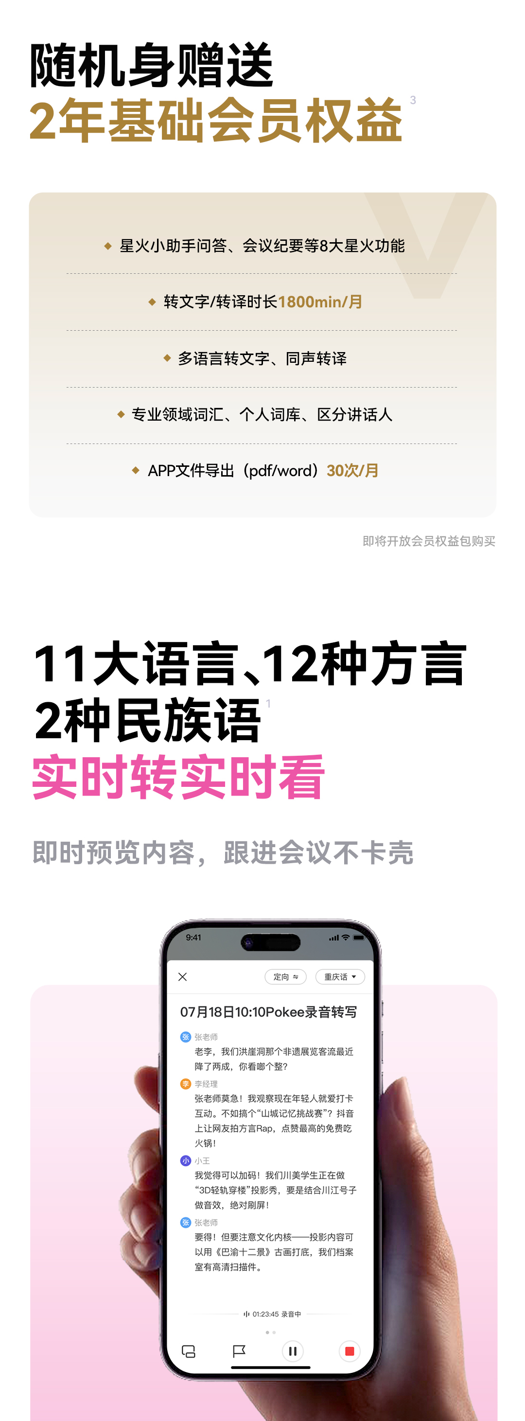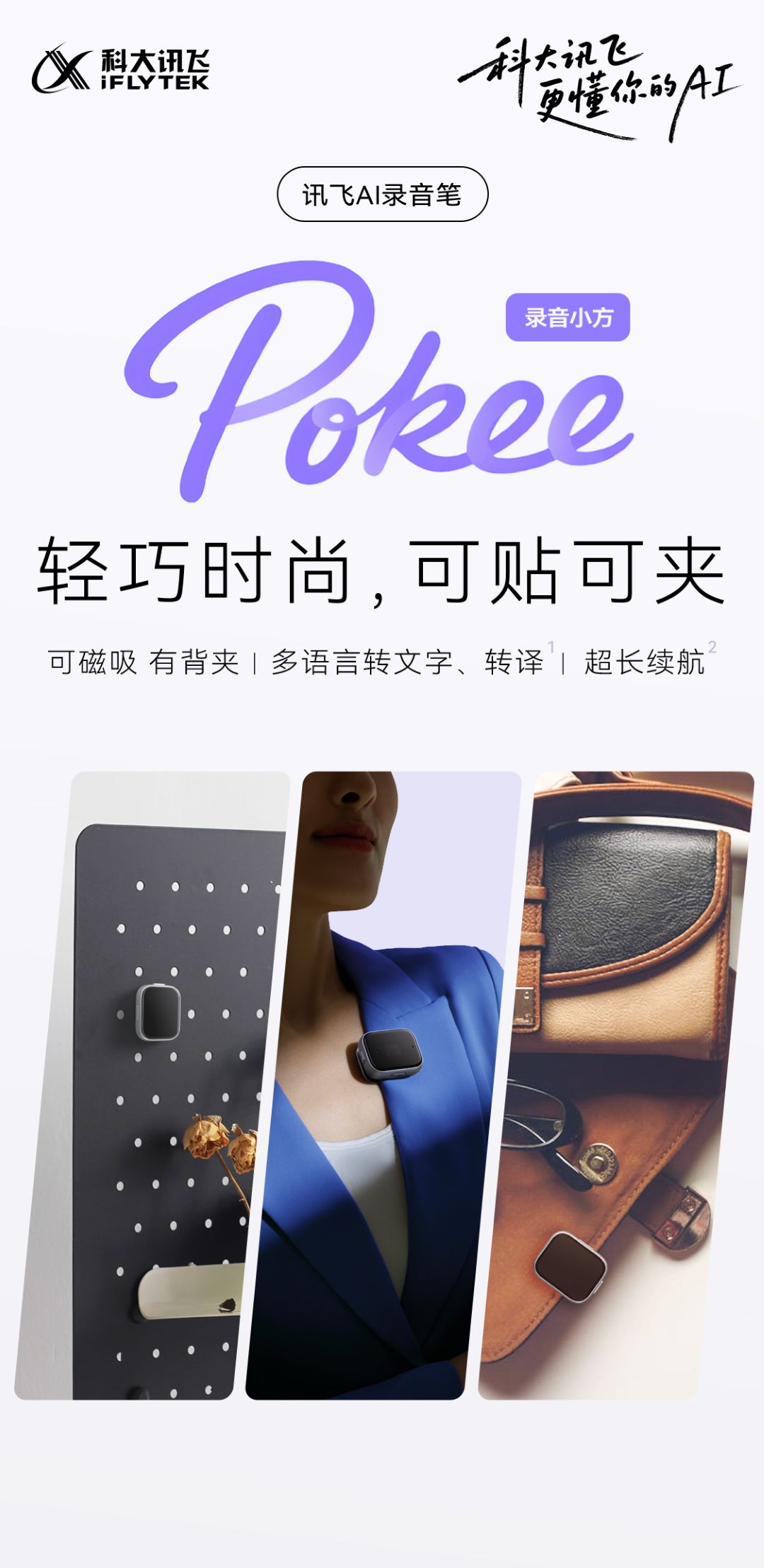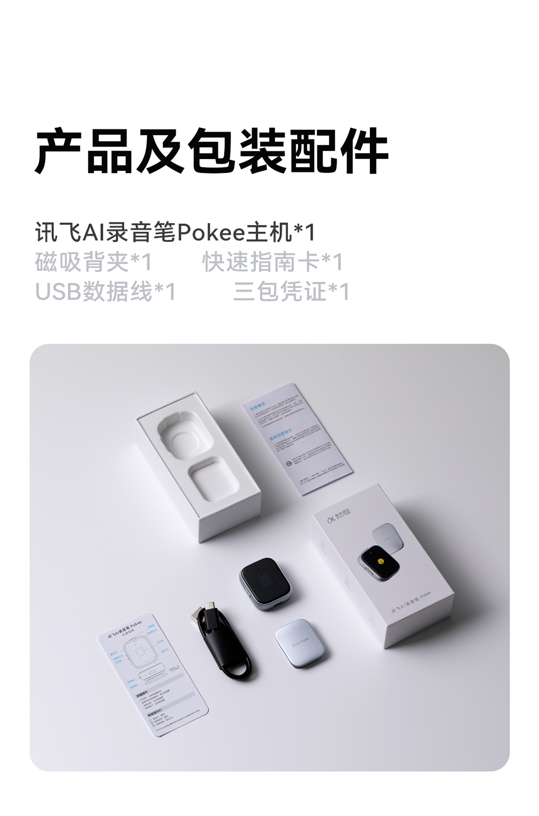 科大讯飞AI录音笔Pokee 64GB 录音转文字同声转译会议纪要 专业录音取证设备小型录音神器 超长续航录音机