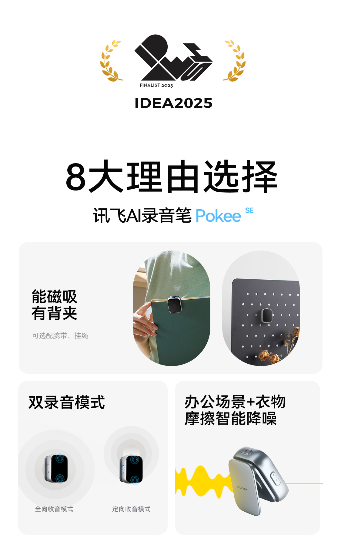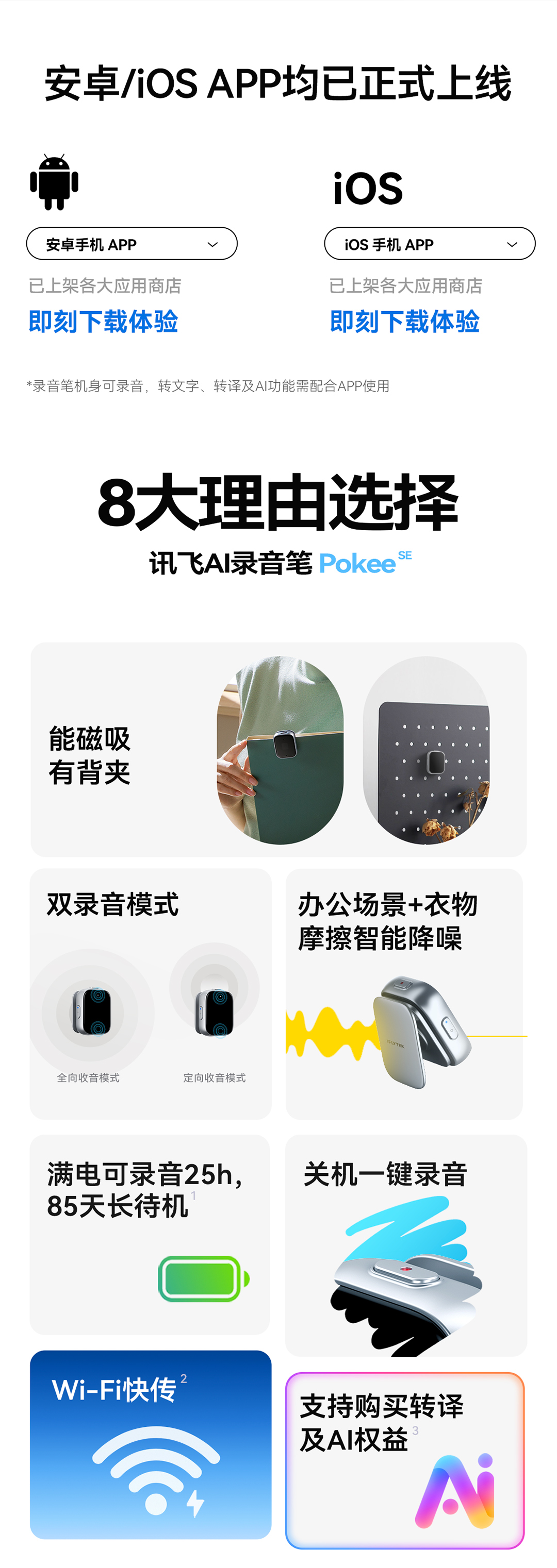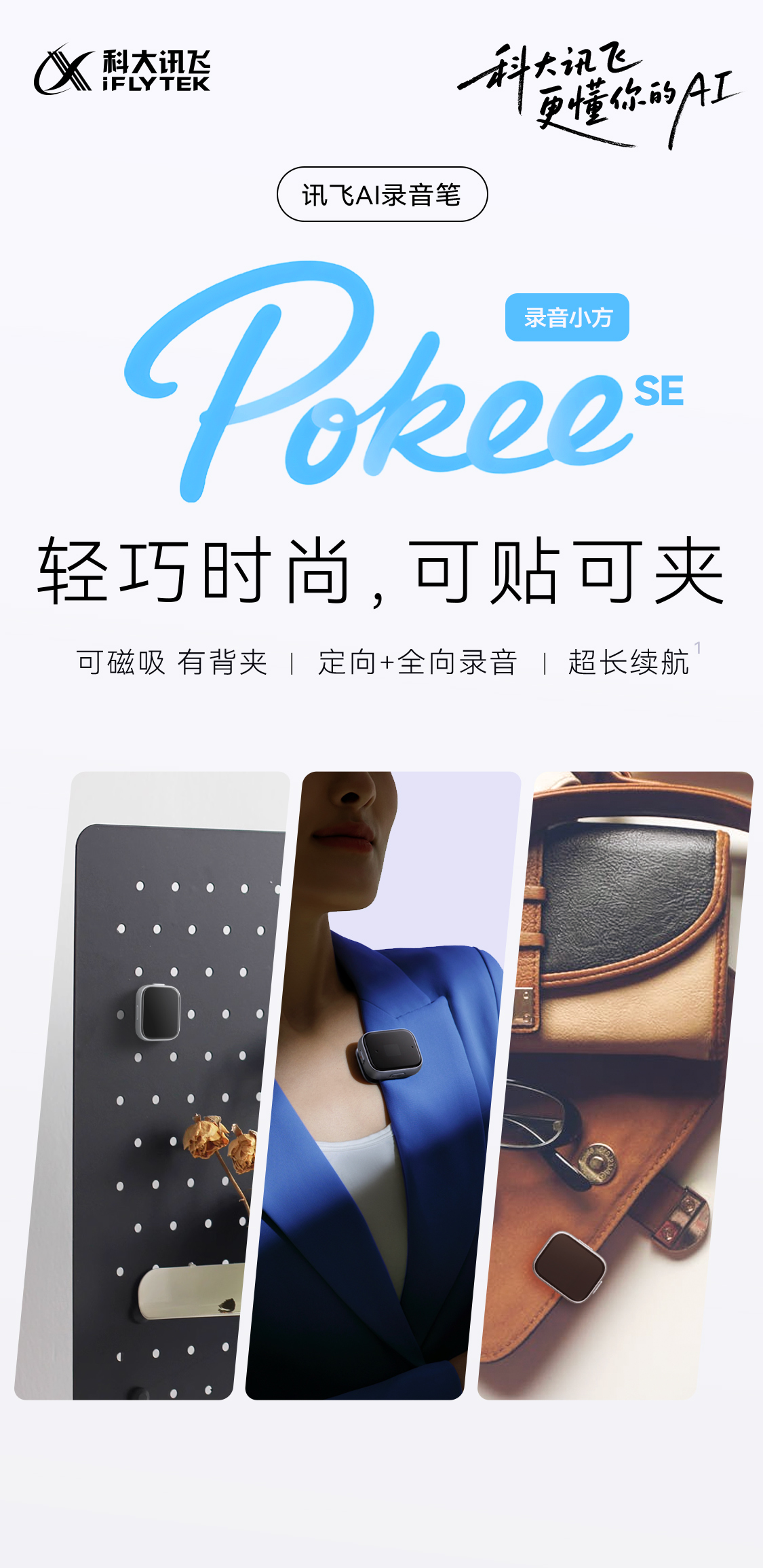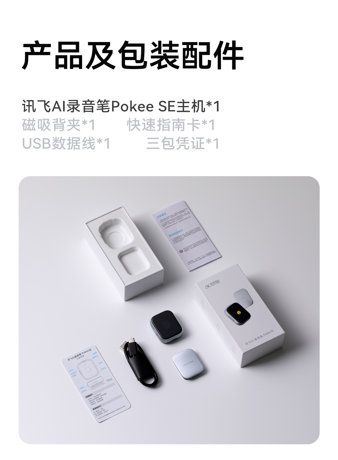 科大讯飞AI录音笔Pokee SE 32GB 随身学生上课专业高清降噪录音转文字