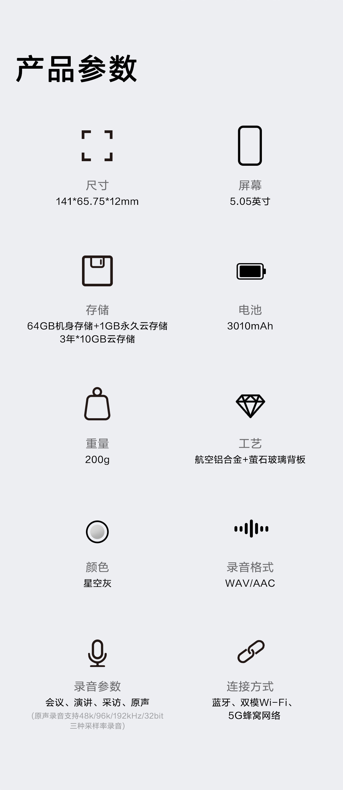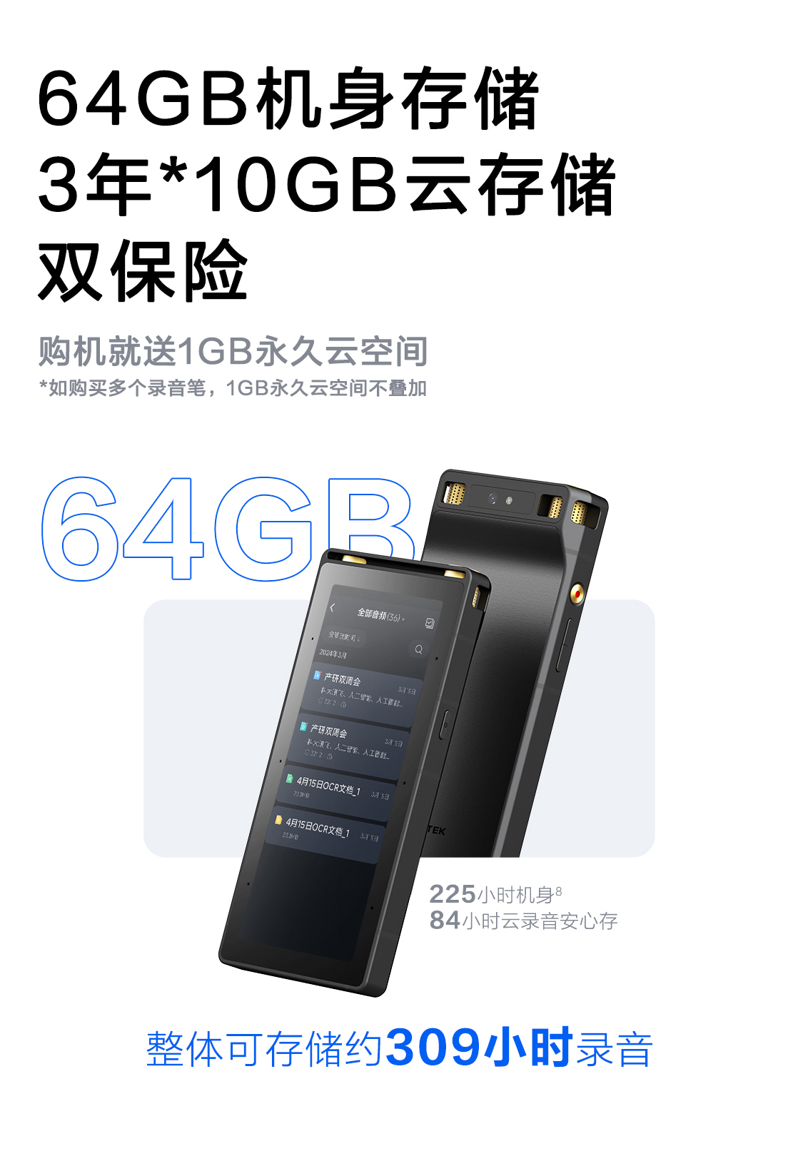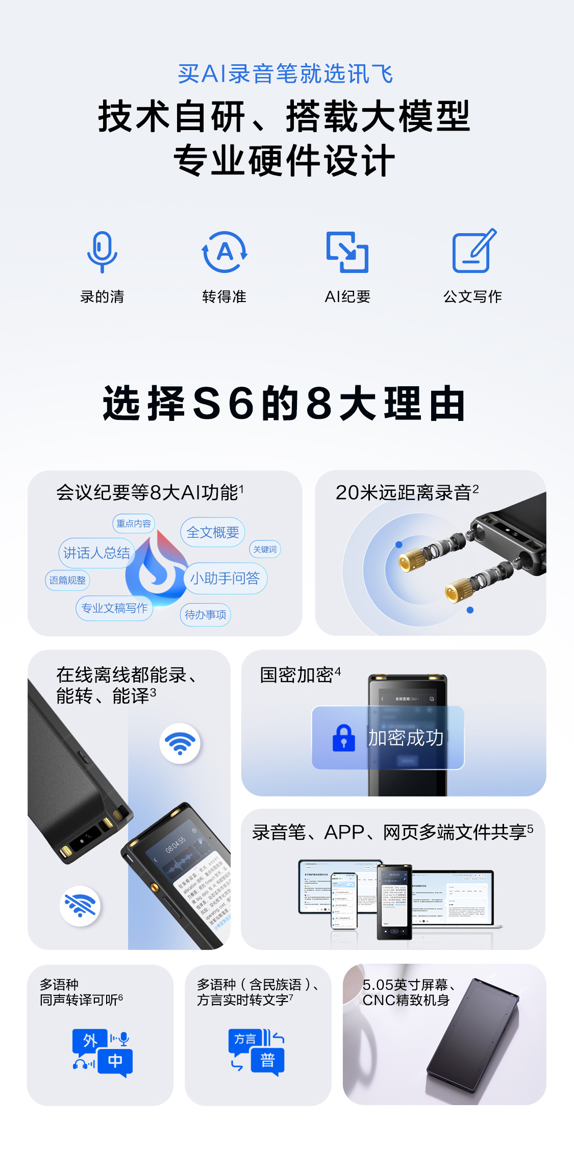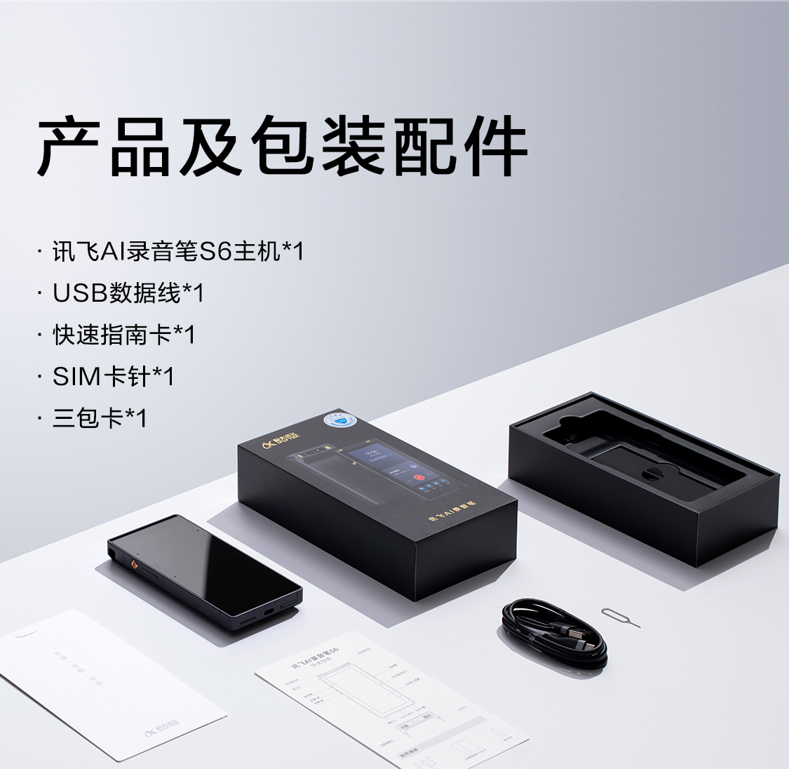 科大讯飞AI录音笔S6星空灰 64GB 免费录音转文字 同声转译 会议纪要 专业录音