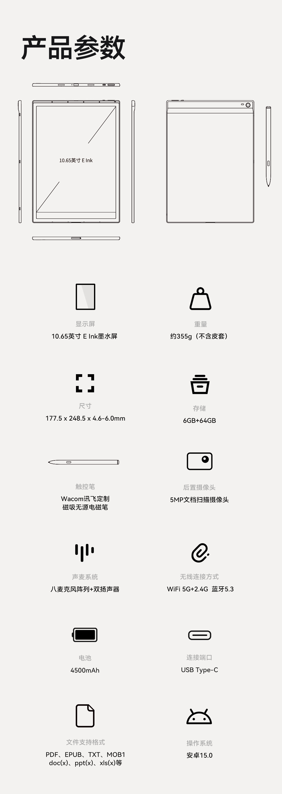 科大讯飞智能办公本X5墨水屏电纸书 电子书阅读器 平板电脑 手写笔记本电纸书